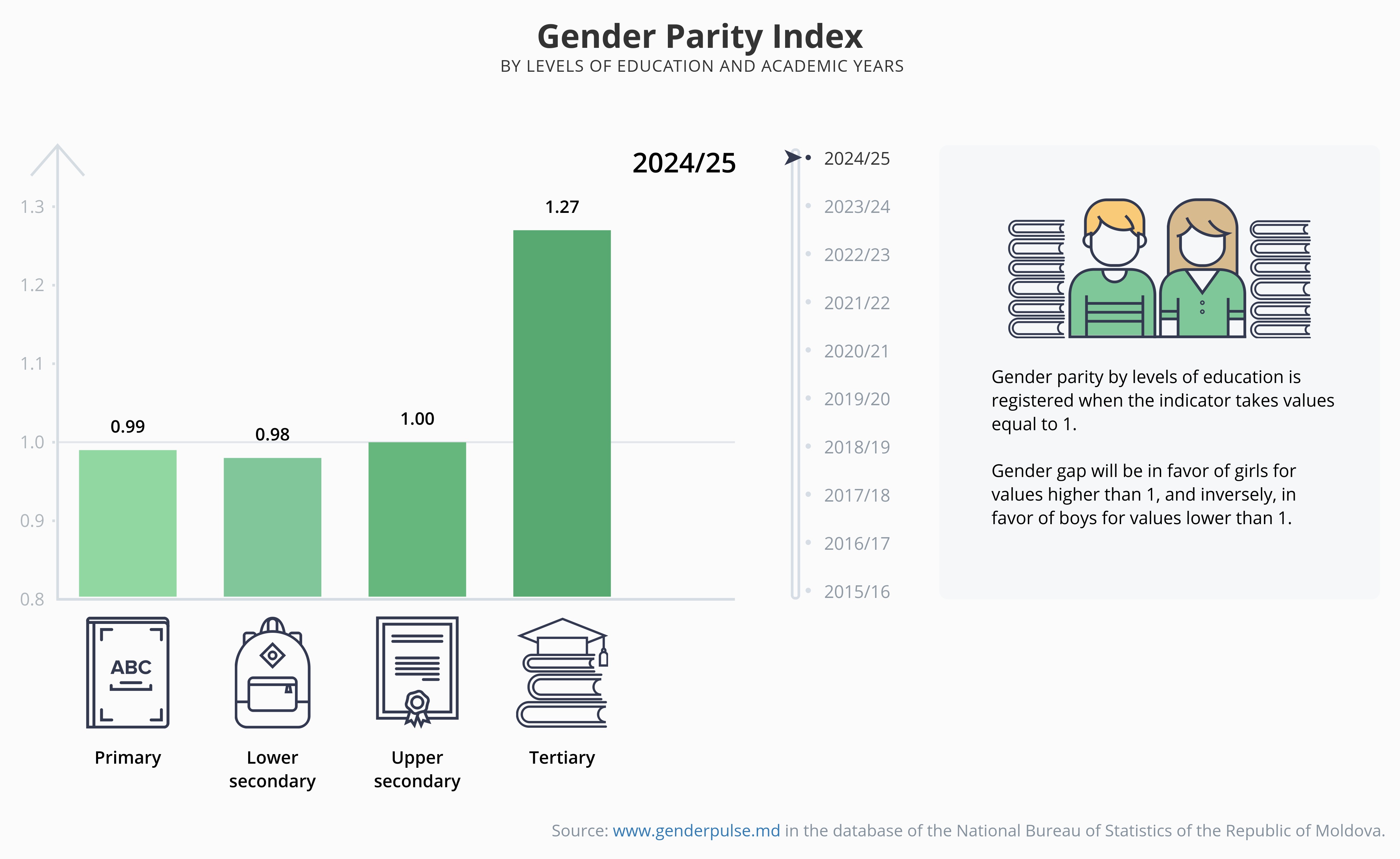 Gender Parity Indexby levels of education and academic years