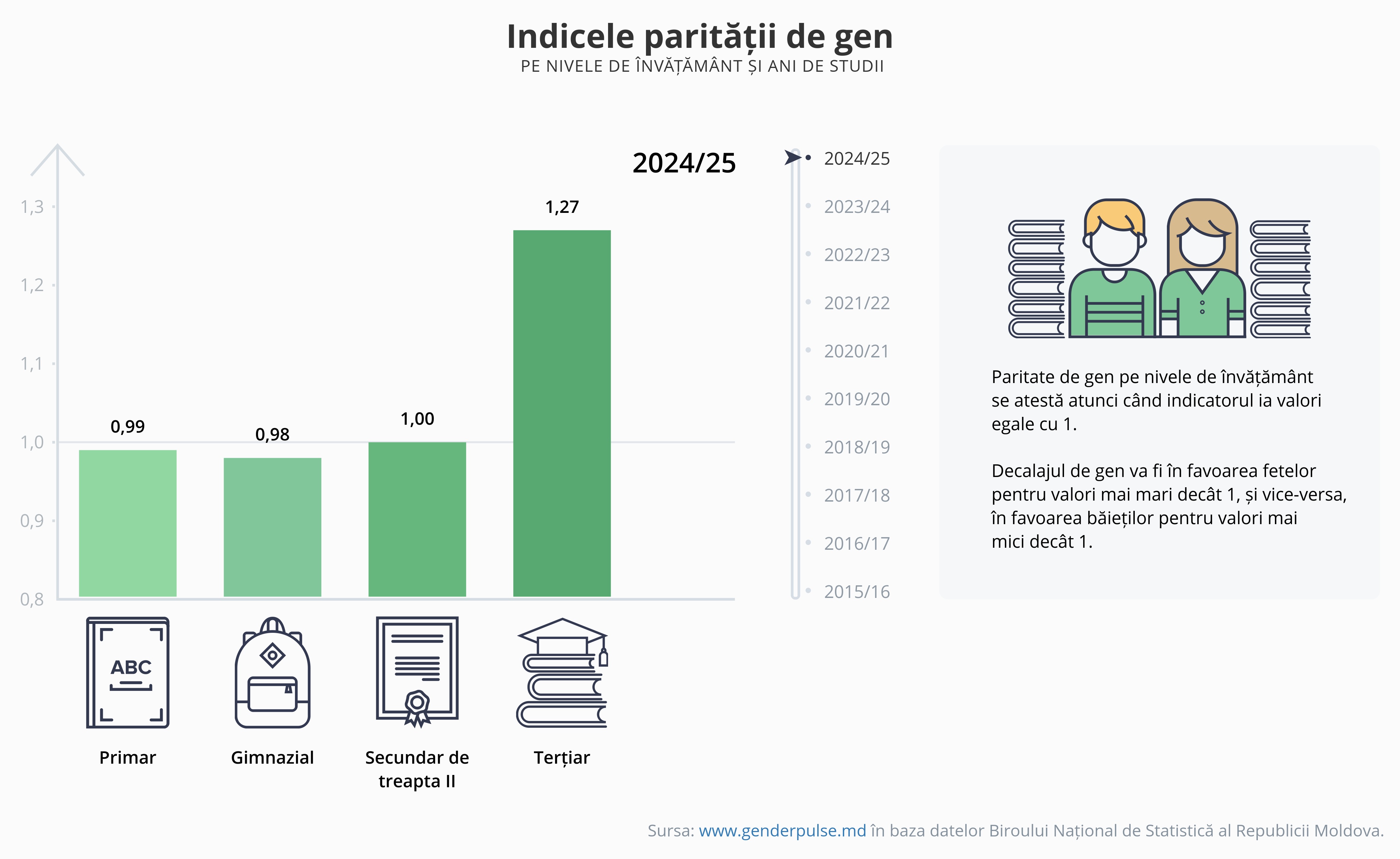 Indicele parității de genpe nivele de învățământ și ani de studii