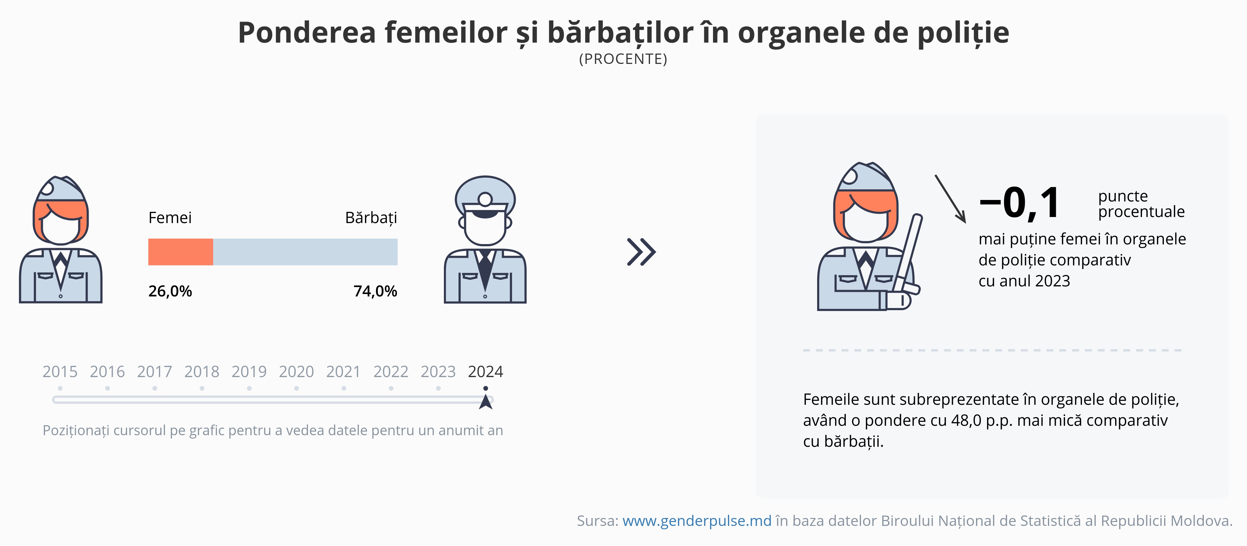 Ponderea femeilor și bărbaților în organele de poliție(procente)