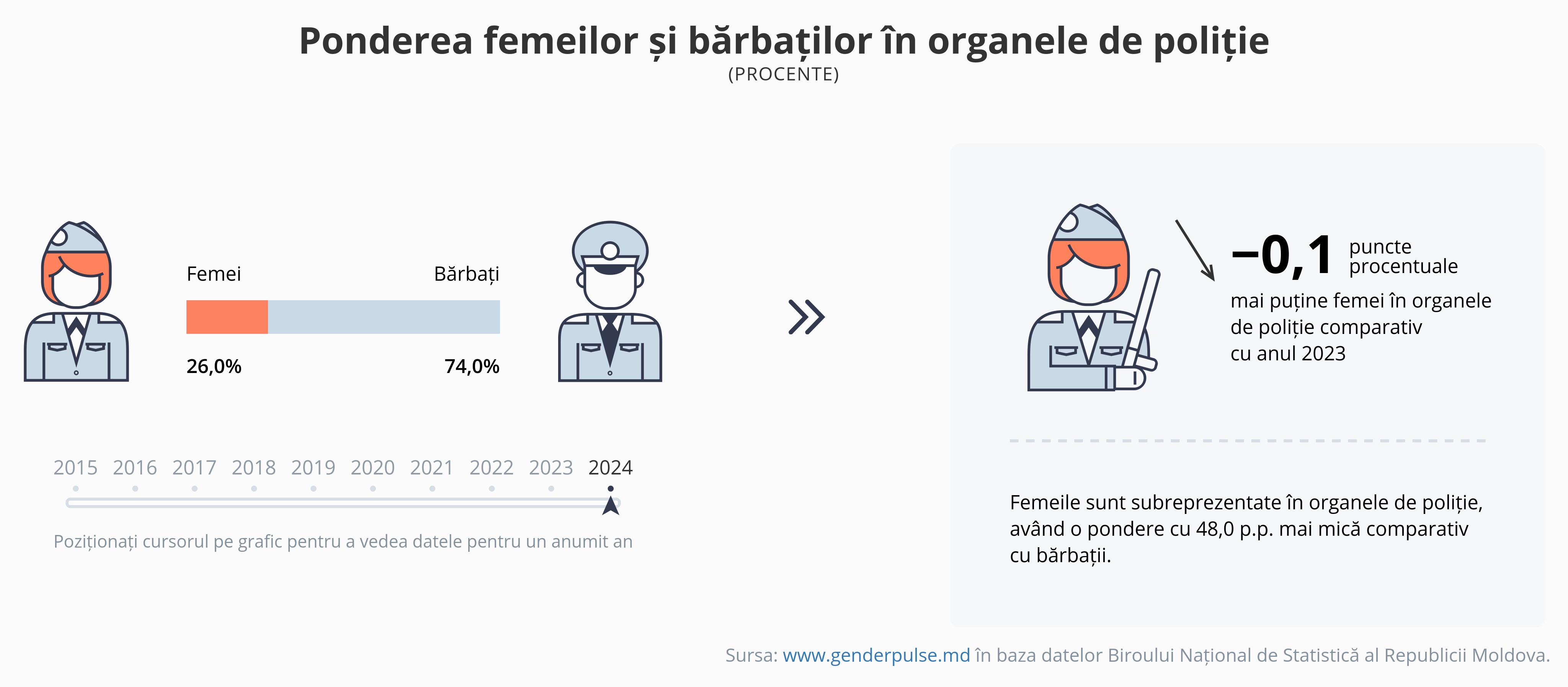 Ponderea femeilor și bărbaților în organele de poliție(procente)
