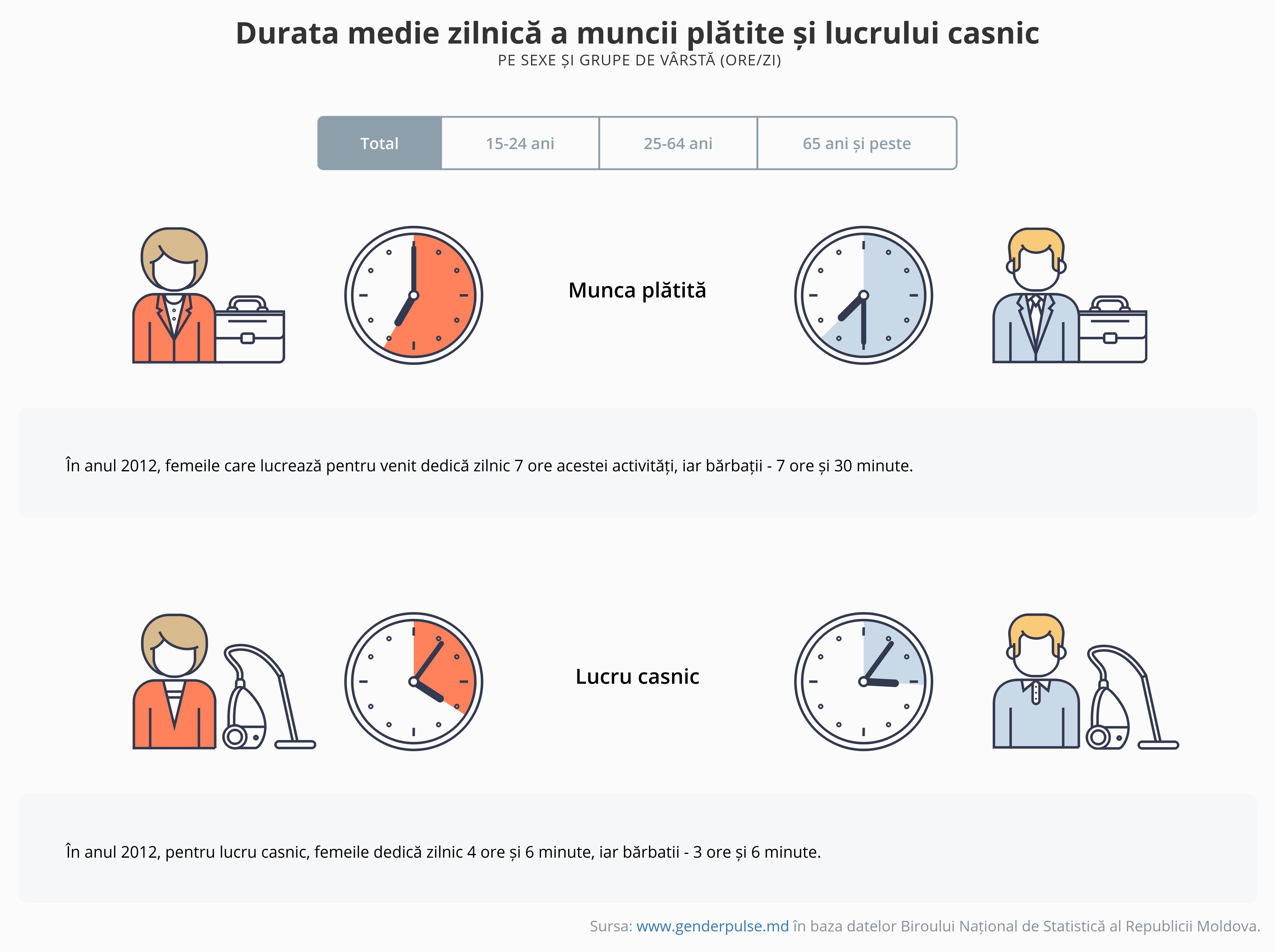 pe sexe și grupe de vârstă (ore/zi)