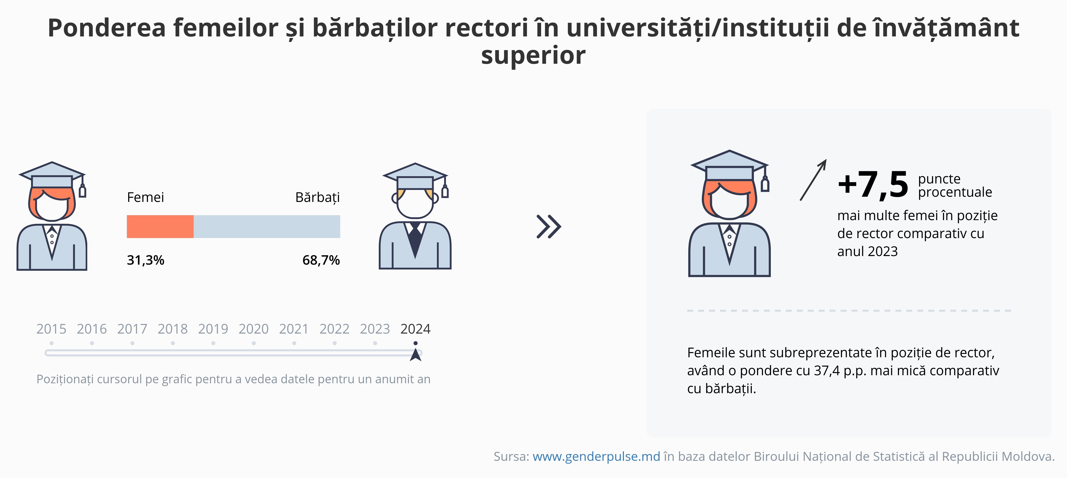 Ponderea femeilor și bărbaților rectori în universități/instituții de învățământ superior