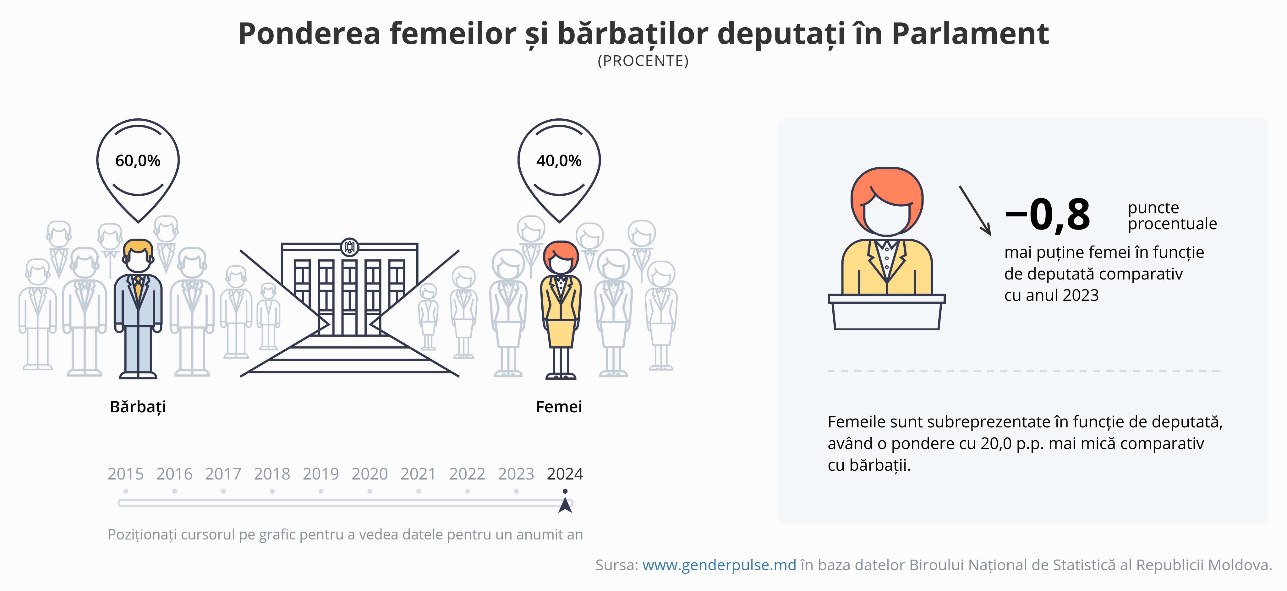 Ponderea femeilor și bărbaților deputați în Parlament(procente)