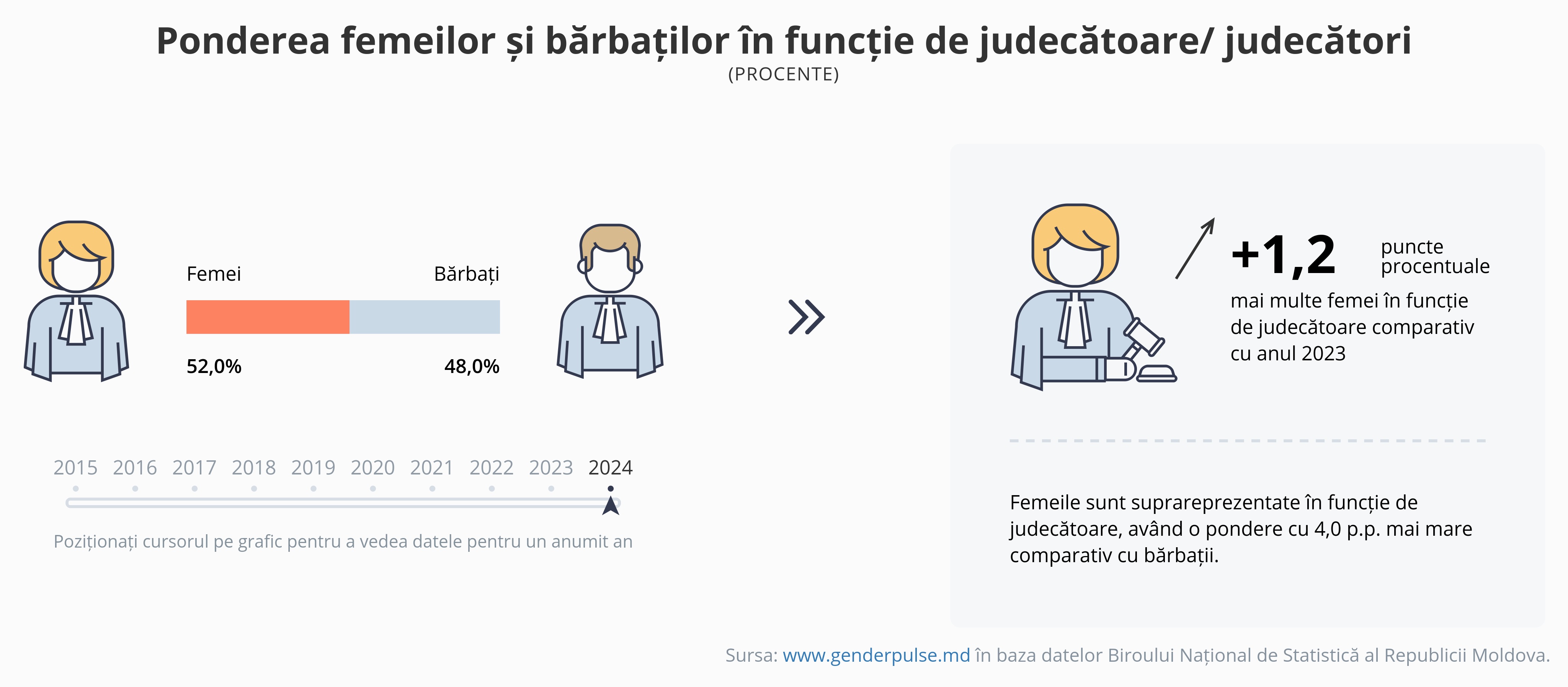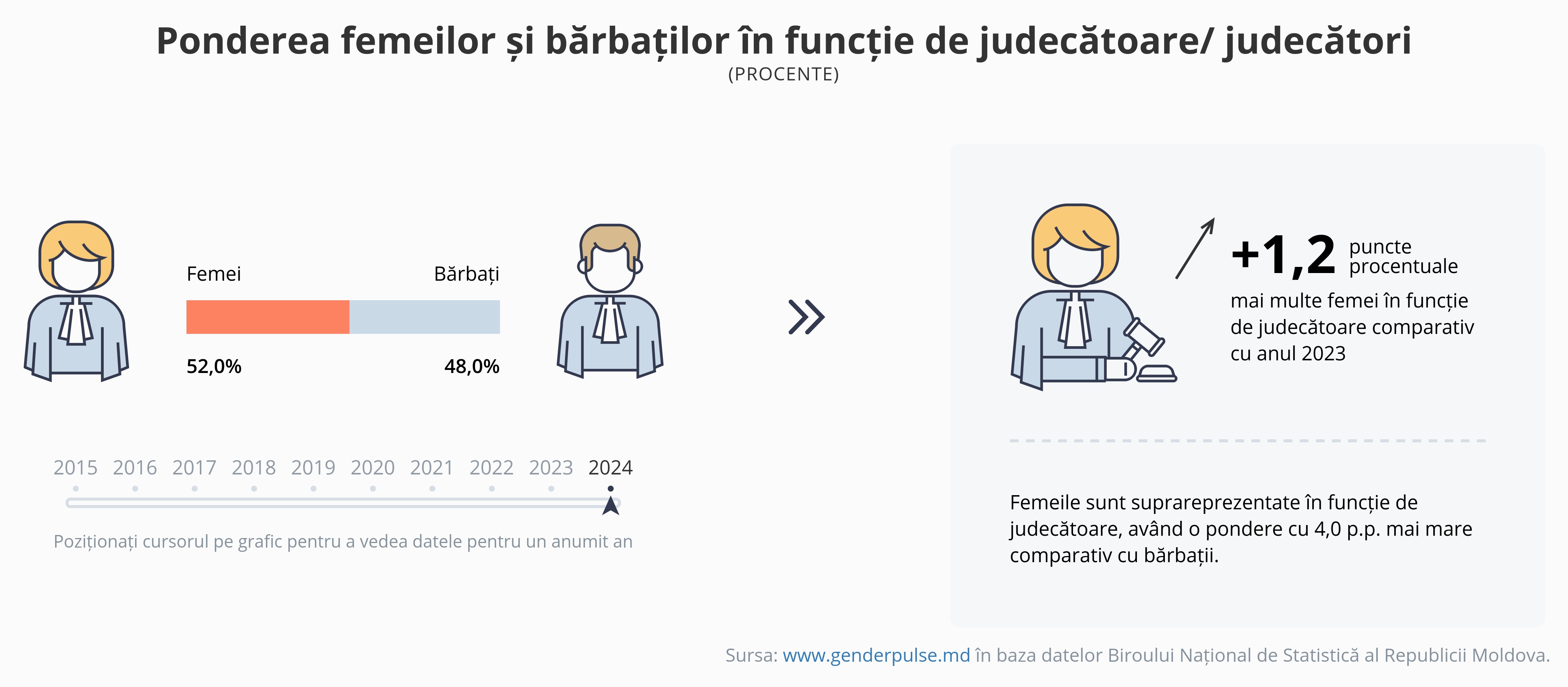 Ponderea femeilor și bărbaților în funcție de judecătoare/ judecători(procente)